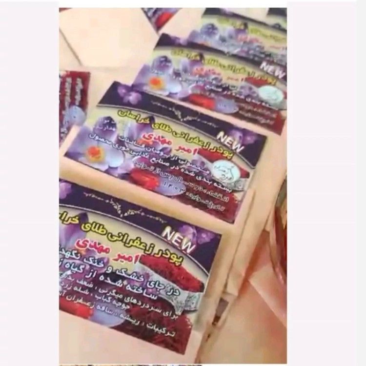 پک صد عددی پودر زعفران امیر مهدی با لگوی زمرد باکیفیت اصلی