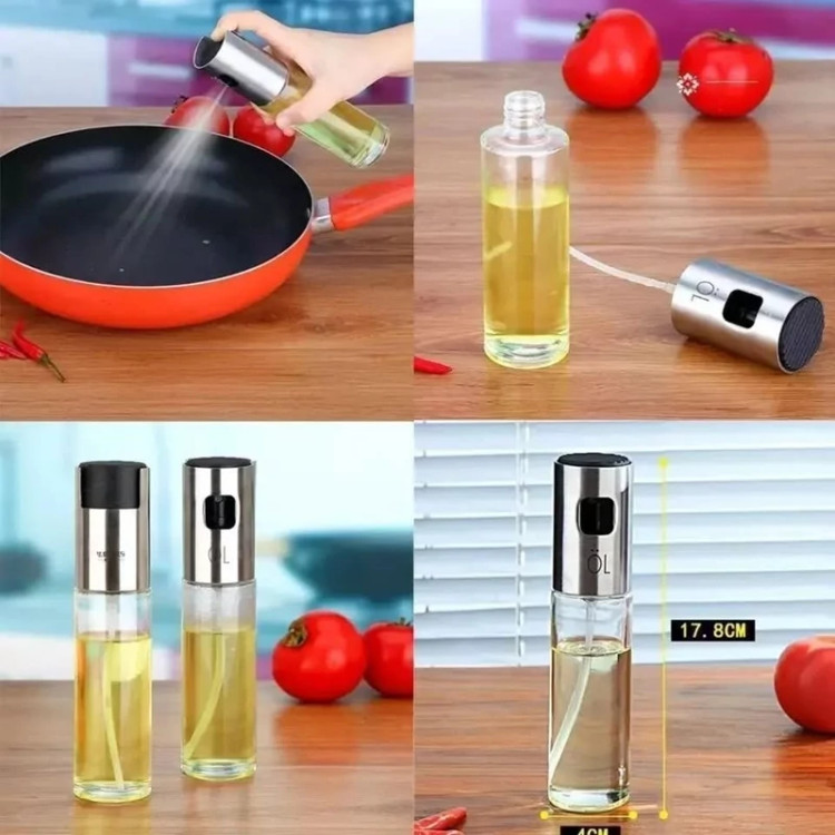 اسپری روغن خوراکی شیشهای 100ml | پمپ نازک پاش استیل — آشپزی سالم و دقیق! 🌿🧑🍳